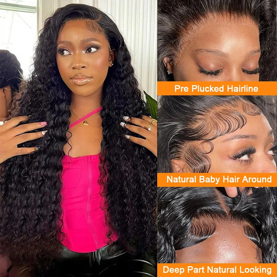 A Perruque Brésilienne Naturelle Bouclée pour Femme, Cheveux Humains, Deep Wave, 13x4, 13x6, Transparent HD